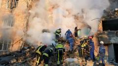 A military helicopter rescued people stranded by raging flood waters from the roof of a collapsing building in India.